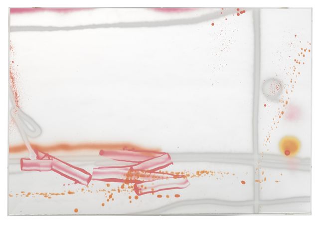 Lacquer and fluorescent colours on mirrored acrylic glass, framed in transparent acrylic glass box, 121 × 190 cm...