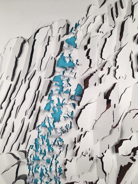 Dimensional paper cut-out with collage, 30 × 20 in.