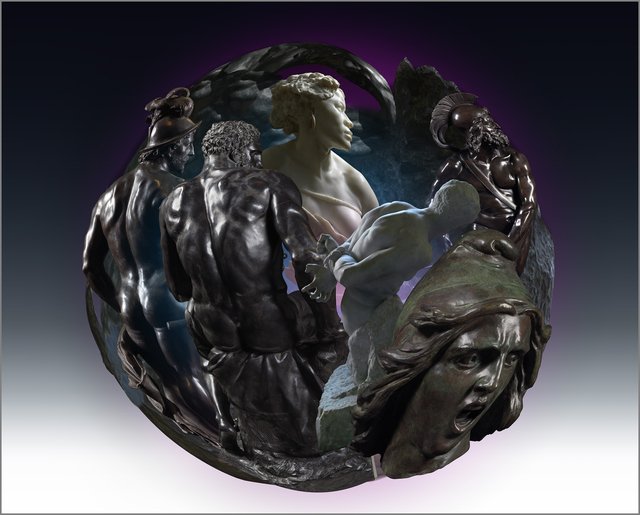 Ken Gonzales-Day, Liberty: Stephan Sinding, The Slave; Jean-Baptiste Carpeaux, Why Born a Slave (Ny Carlsberg Glyptotek, Copenhagen); encircled by Hendrick de Keyser, Mars; Guillaume Boichot, Seated Hercules; Pierre-Jean David d’Angers, Philopoemen; and F