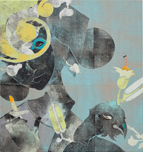 Coloured woodcut print on canvas, 90.4 × 85.5 cm...