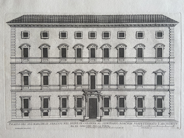 Giovanni Battista Falda, Palazzo del Sig Marchese Serlupi nel Rione di Colonna al Seminario...Architettura di Giacomo della Porta. Plate 55 from Palazzi di Roma de Piu Celebri Architetti, vol II (1655)