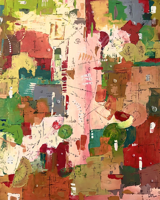 Acrylique sur toile de lin avec couteau et pinceau, 100 × 80 × 2 cm.