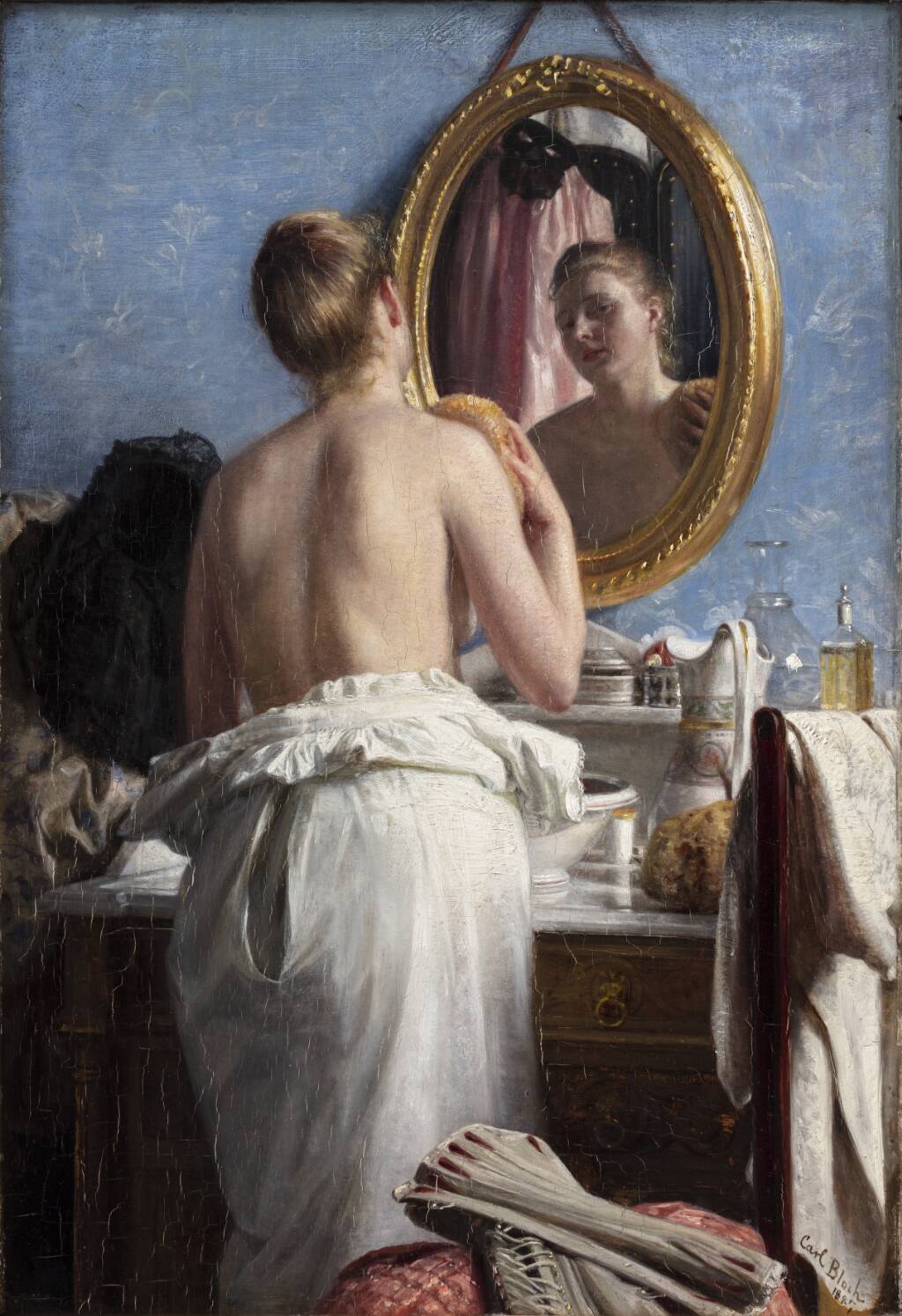 Title: En pige, som vasker sig før et karneval