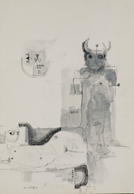 Title: Dia Azzawi, Dirasa li-malhamat Gilgamish: Enkidu was al-baghia (Study for The Epic of Gilgamesh: Enkidu and the Harlot) (1966)