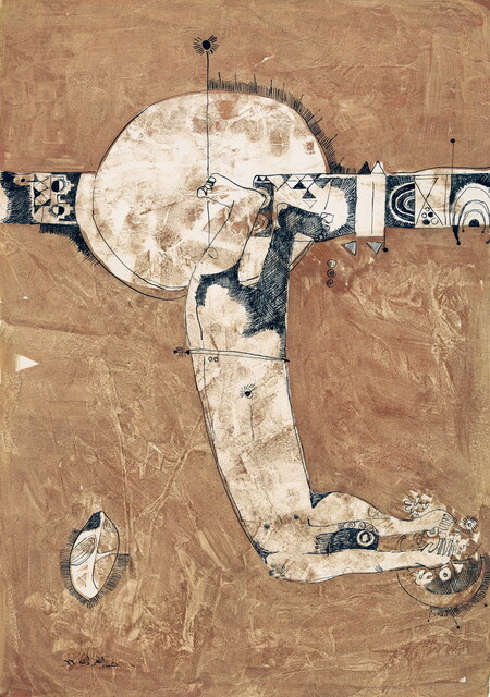 Title: Dia Azzawi, Dirasa li-malhamat Gilgamish: malaka al-huzn wa al-asaa ruhi (Study for The Epic of Gilgamesh: Despair and Sorrow Have Engulfed my Soul) (1966)