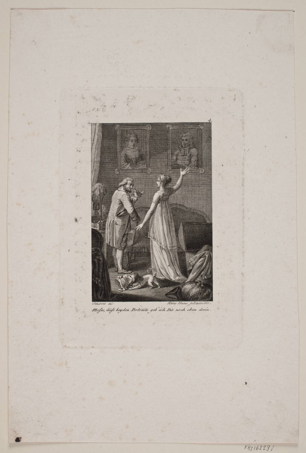 Illustration med dame og herre foran to portrætter
