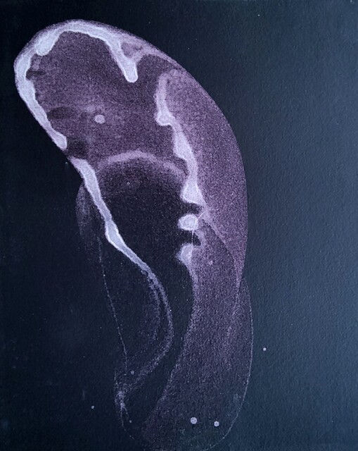 Soap bubbles with pigment, painting on cardboard, 39 × 22 cm...