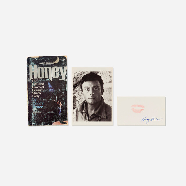 Title: Honey Harlow, Lipstick print, postcard and Honey: The Life and Loves of Lenny's Shady Lady (1st edition) (c. 1978)