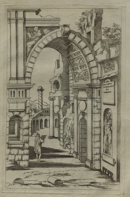 Title: Jacques Androuet Ducerceau I, Fragmenta Structurae veteris (Ruins of old Buildings), nine plates plus title-plate from a set of twelve after Leonard Thiry (1550)