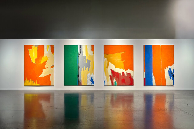Oil, tar and traffic paint on linen, 280 × 205 cm.