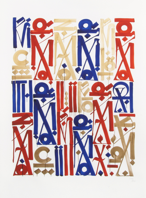 Silkscreen in colors with hand staining on wove paper, 38 1/4 × 12 in...