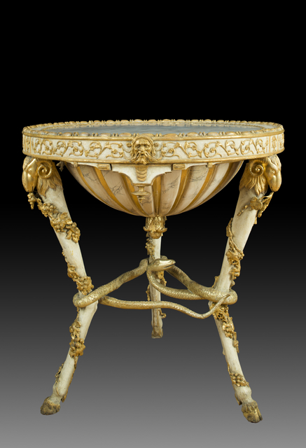 Title: Neapolitan workshop, Painted and gilded wood table inspired by the Antique, with inset white marble top (Late 18th century)