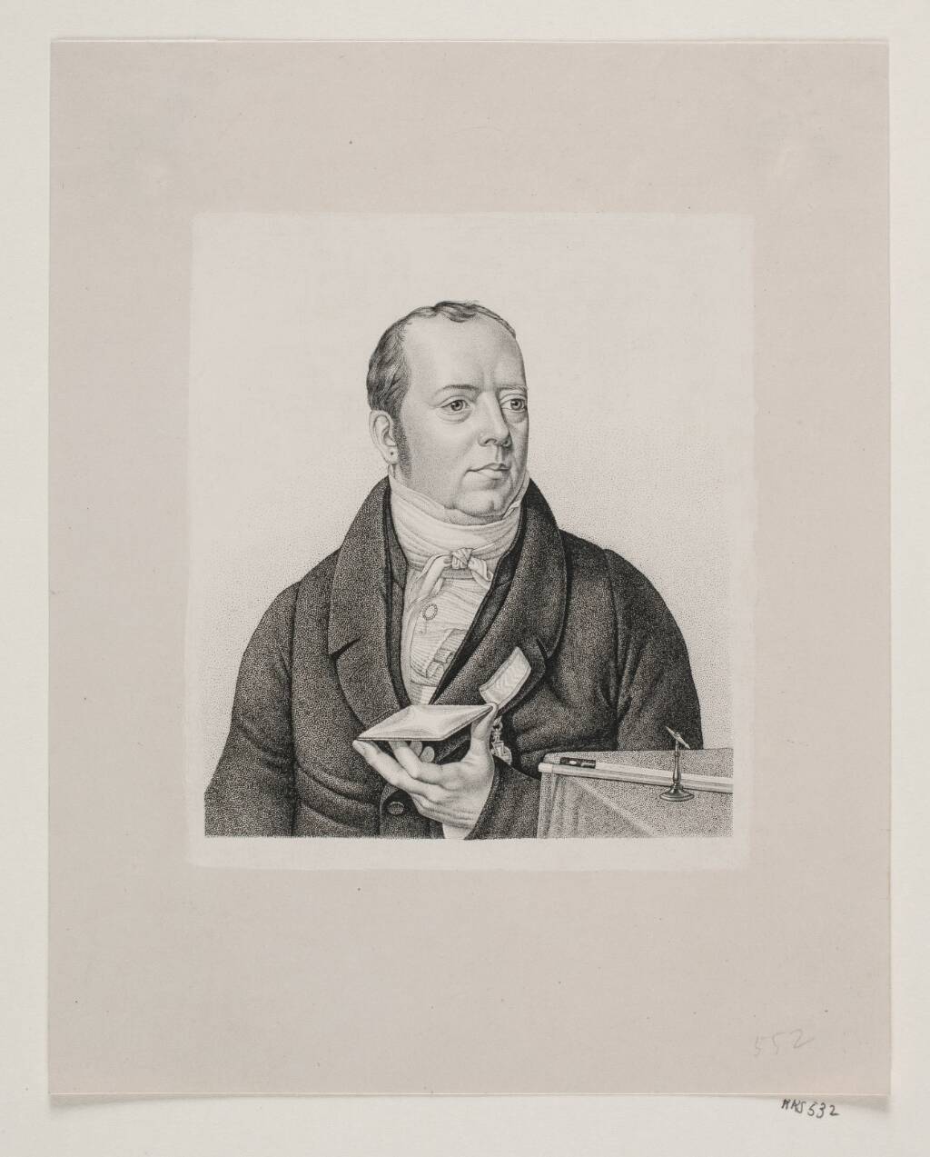 Studie af H. C. Ørsted efter maleri på Frederiksborg af C. A. Jensen 1842. Farveangivelser