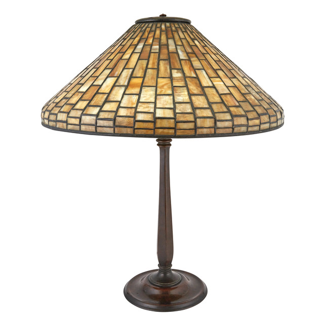 Title: Tiffany Studios, Tiffany Studios Bronze and Leaded Glass Geometric Lamp (Circa 1910)