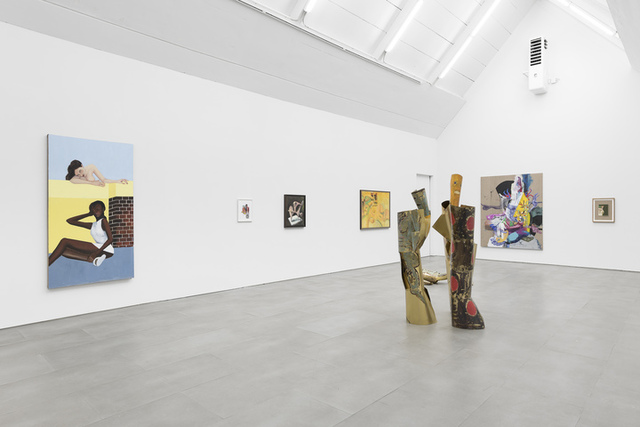 Oil, inks and vinyl on textile, copper plate and panel, 116 × 89 cm...