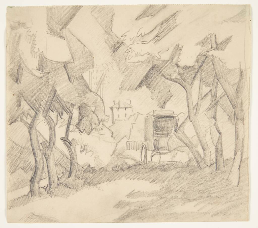 Træer, hestevogne og hus