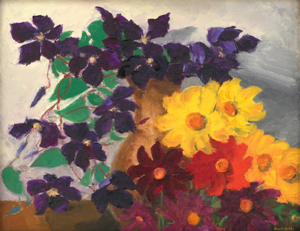 Poem by Fujiwara no Okikaze with Underpainting of Clematis