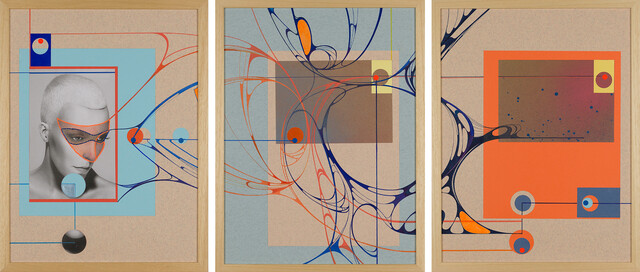 Mixed Media on Canson Paper and Eco-Friendly Handcrafted Textile with Silver Leaf, 146.5 × 101 cm...
