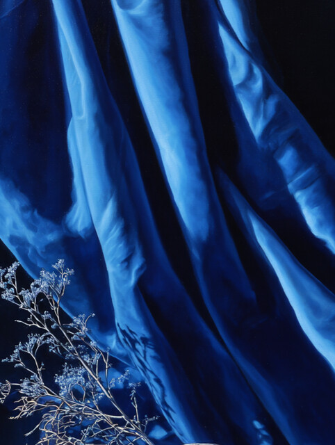 Saskia Rem Brandt, "Ultramarine Silence", ultramarine abstract painting, blue monochrome art, contemporary minimalism, luxury abstract artwork, modern stillness painting, blue drapery art (2025)