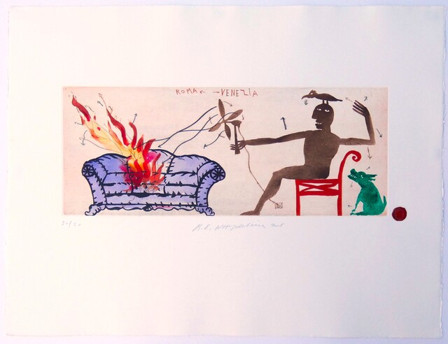 Title: Raymond Waydelich, Roma - Venezia (brennendes Sofa) Hund (Roma-Venezia (burning Sofa) Dog)) (2005/2023)