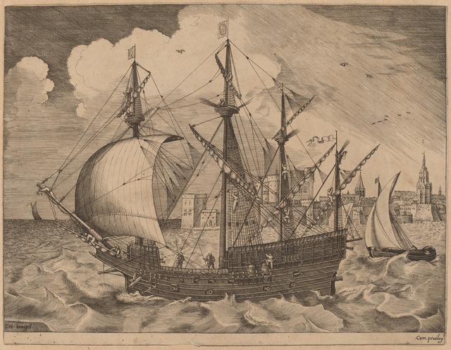 Title: Frans Huys after Pieter Bruegel the Elder, Armed Four-Master Putting Out to Sea (1565)