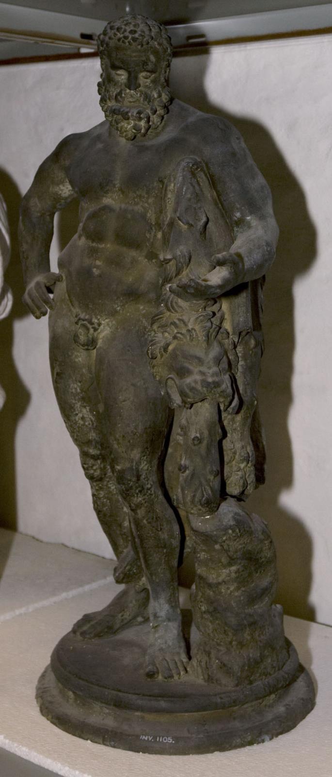 Title: Herakles, stående med kølle og løveskind under venstre arm. Variant af Herakles Farnese typen