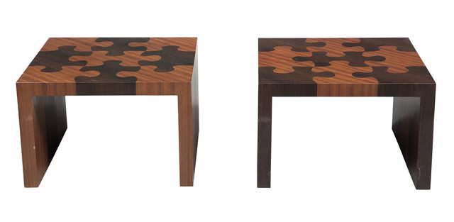 Title: Pair of Custom Made Puzzle Piece Specimen Hardwoods End Tables