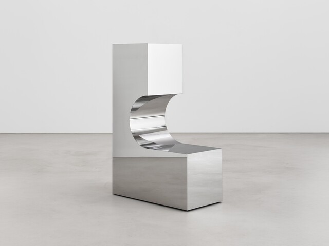 Winsor's sculpture is in fact a wall piece, a three-dimensional cube fashioned from what she calls "acrylic altered cement," which has been constructed as a very thin (approx. 1/8 ...