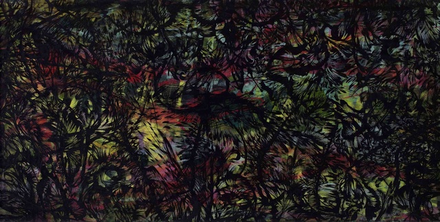 Ink, mineral pigment and acrylic on silk 综合媒材, 122 × 244 cm.