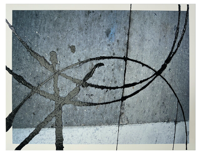 Pigmented ink print on paper with hand applied carbon black acrylic ink, powdered pigment and sgraffito, 16 1/2 × 21 1/2 in.