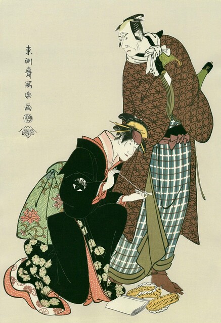 Toshusai Sharaku, The Actors Ichikawa Komazo Ⅲ as Kameya Chubei, and Nakayama Tomisaburo Ⅰ as the Courtesan Umegawa of Shinmachi (After 1794)
