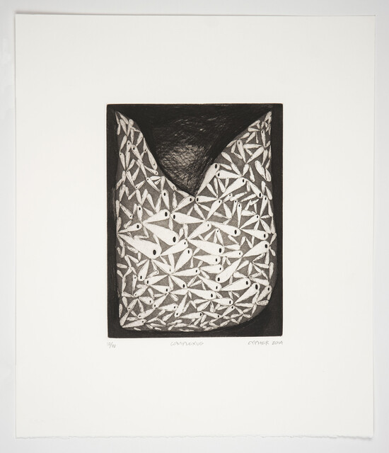 Embossed stamp on blue-gray paper with metal staple on vellum (recto); engraved cypher (verso)...