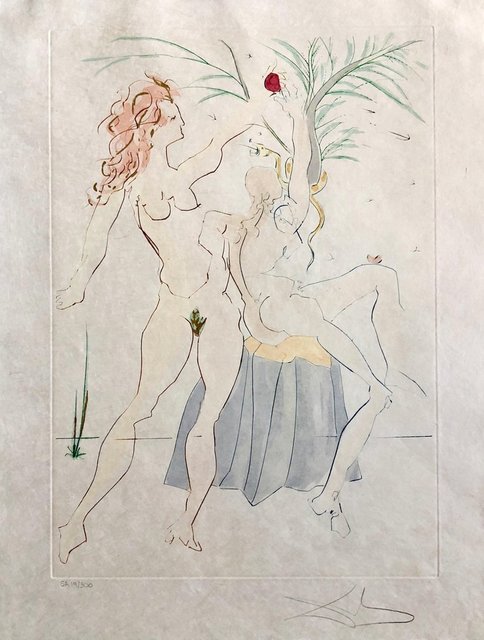 Title: Salvador Dalí, Salvador Dali Pochoir Etching Engraving Adam & Eve Japon Paper Gold Embellished (1970-1979)