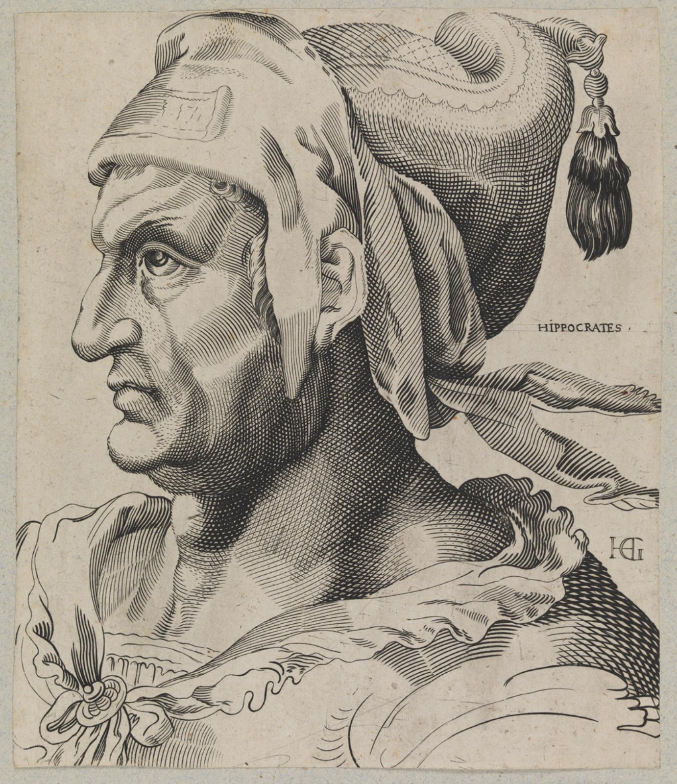 Hippocrates. Bust of a man in profile
