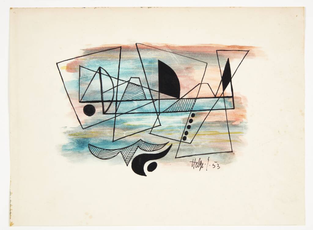 Utställningsaffisch till "Jacques Villon-Peintures", Galerie Louis Carre. Reproduktion av abstrakt målning av J. Villion 1955