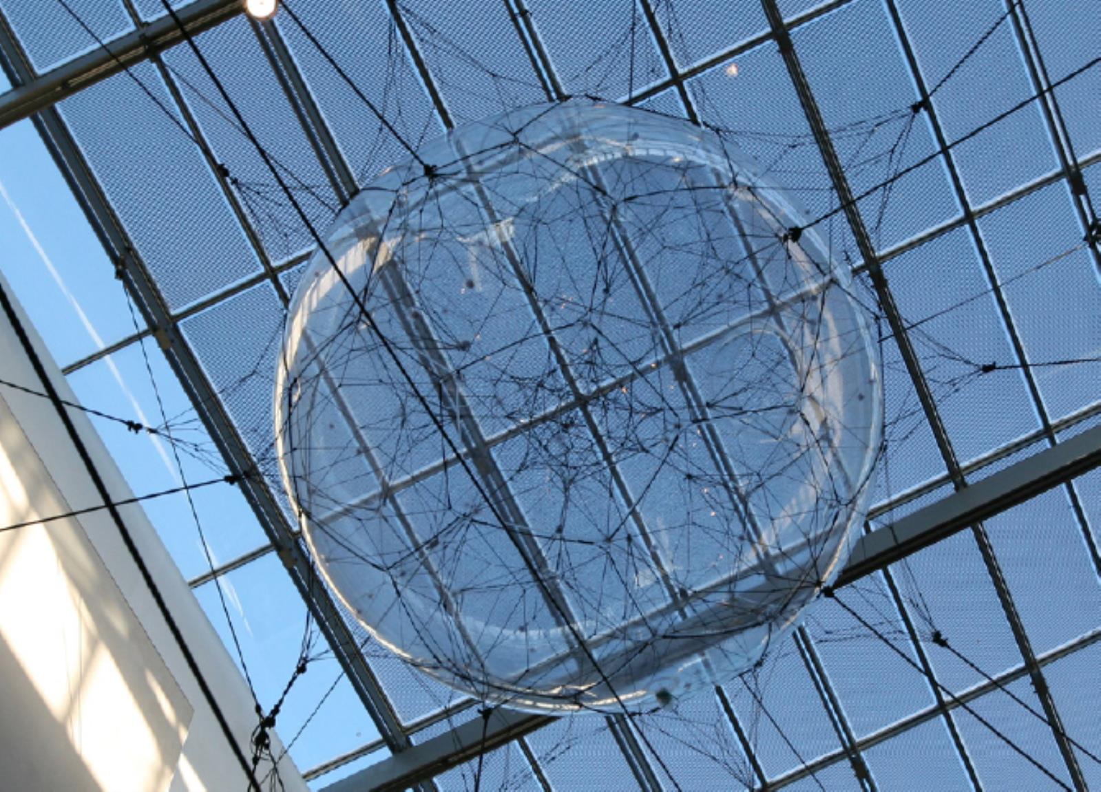 The biosphere is inspired by scientific studies of e.g. clouds, soap bubbles, and the geometric principles of cob¬webs. Saraceno is originally trained as an architect, and his biospheres can be viewed as models for alternative types of social spaces and habitats for people – or even for new, habitable planets. Taking a metaphorical and poetic approach to serious issues such as Earth’s overpopulation, environment, and migration, Saraceno wishes to point to new potential relationships between culture and nature. He seeks to translate the consequences of global change and technological developments into a positive, Utopian reinvention of our world.