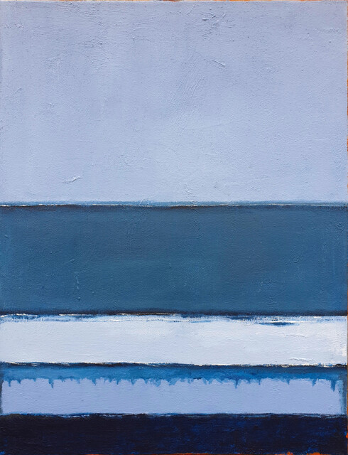 Leon Grossmann, Blue Grey Abstract Painting, Wind of Change, Blue, Grey, Teal, White, Ultramarine, Dark Blue, Homage to Rothko, seascape, Marine, textured, stripes, lines, geometric, minimalism (2025)