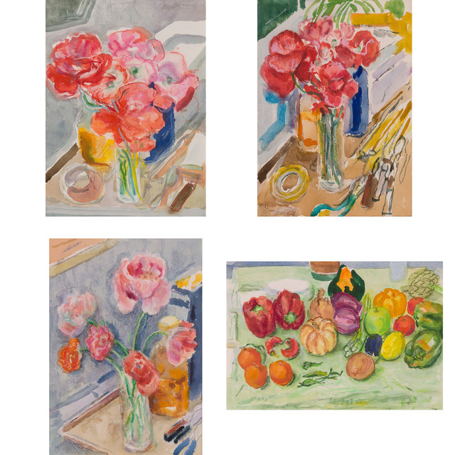 Title: Nell Blaine, Four Artworks: Pink Poppies; Pink Poppies, II; Shirley Poppies; Fruit and Vegetables, II