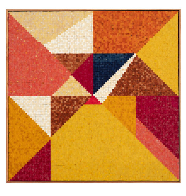 Pigmented wax on wood, 103 × 103 cm.
