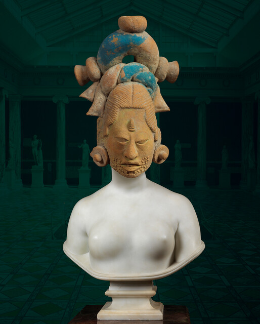 Ken Gonzales-Day, California (Digital composition with, Mexico, Whistle in the Form of a Woman, LACMA; Hiram Powers, California, SAAM; Courtyard, Ny Carlsberg Glyptotek, Copenhagen) (2025)