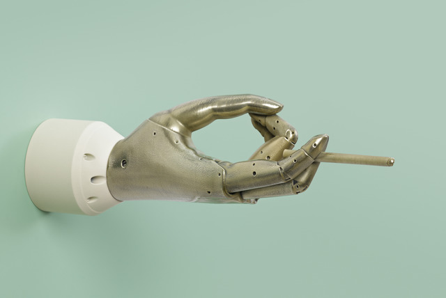 Laser sintered PA plastic, polyurethane, Soft-Touch & brass finish, 9 × 11 × 26 in.