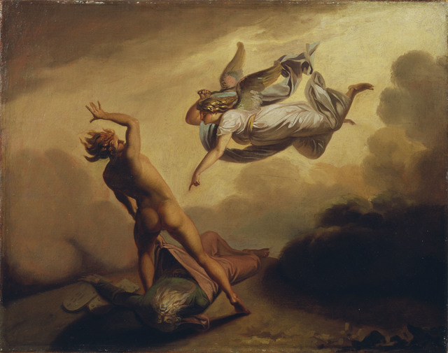 N.A. Abildgaard, Ærkeenglen Mikael og Satan strides om Moses' afsjælede legeme (ca. 1782)