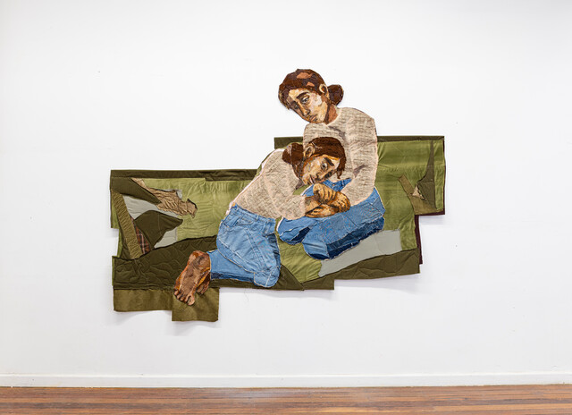Discarded clothes, linen, old curtain, woolen blankets, and embroidery thread, 193 × 250 cm.