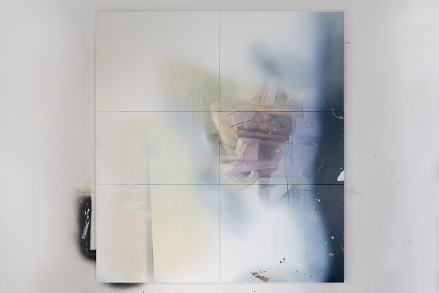 Lacquer paint, dust, and acrylic sheet, 48 × 60 × 3 cm...