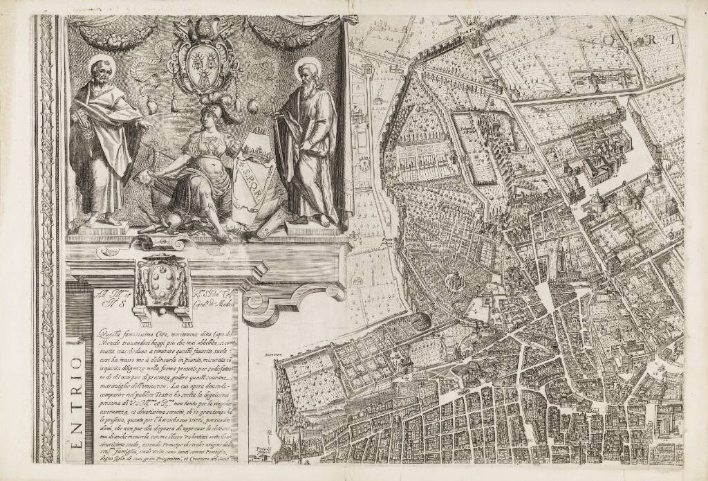 Kort over Rom med de syv pilgrimskirker. Øverste venstre del