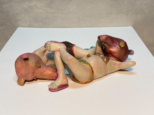 Oil and acrylic on bronze, 28 × 27 × 37 cm...