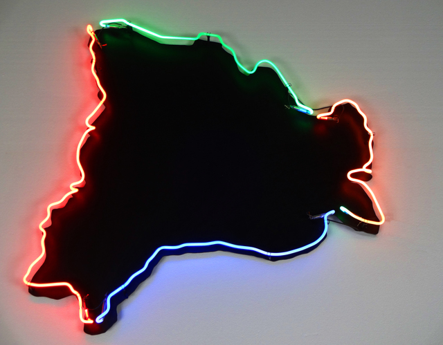 Neon light, Wood board, 130 × 130 × 12 cm.