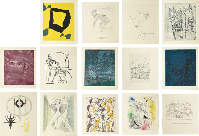 The complete set of 14 etching and aquatints, ten in colours, on wove paper, with full margins, with title page, text in French by Crevel and Batache, and justification, the sheets...