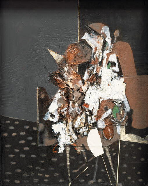 Handmade paper, woodboard, oil paint, 50 × 40 cm...