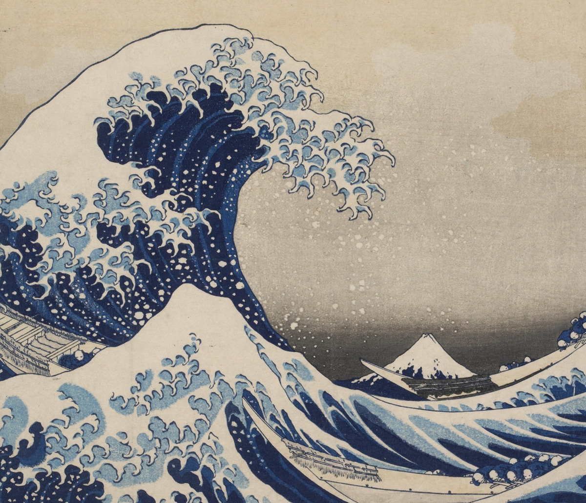 Literally meaning “Pictures of the Floating World,” ukiyo-e refers to a style of Japanese woodblock print and painting from the Edo period depicting famous theater actors, beautiful courtesans, city life, travel in romantic landscapes, and erotic scenes. The Floating World—as the pleasure districts of Edo (modern-day Tokyo) were called—exemplifies the sensory pleasures of urban life, but also offers a bittersweet reminder of the fleeting nature of worldly delights. It’s commonly said that in Edo Japan, anyone could own a masterpiece ukiyo-e print for about the price of a bowl of noodles. While this claim oversimplifies, it is true that by the 17th century, ukiyo-e printmakers innovated centuries-old woodblock text printing techniques to create colorful picture prints that were distributed widely for popular consumption. Some of the greatest Japanese artists of their time—Utagawa Hiroshige, Katsushika Hokusai, Utagawa Toyokuni III, and Keisai Eisen among them—became known primarily as woodblock print designers in the ukiyo-e style. In the 19th century, ukiyo-e printmakers also began to focus on landscape, creating series such as Hokusai’s famed Thirty-Six Views of Mount Fuji (1830–1835). Ukiyo-e also had a profound impact on European artists at that time—its flattened perspective and innovative compositions inspired artists such as Mary Cassatt, Vincent van Gogh, and Henri de Toulouse-Lautrec, as well as the Japonisme movement in art and design.